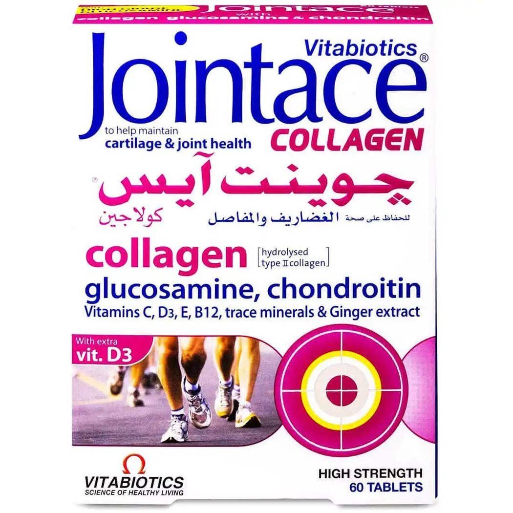 Vitabiotics Jointace Collagen is a comprehensive joint support supplement designed to help maintain healthy joints, cartilage, and connective tissues. The formula combines Type II collagen, glucosamine, chondroitin, vitamins, minerals, and ginger extract to support joint comfort and flexibility.